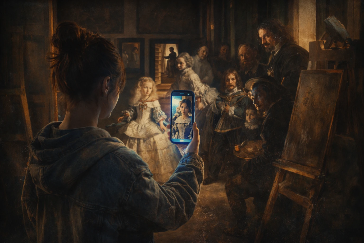 De Velázquez qui cache le roi dans un miroir flou en 1656 jusqu’aux millions de vidéos « Mirror Reveal » sur TikTok en 2026, le miroir n’a jamais cessé d’obséder les artistes, les photographes et maintenant les créateurs de contenu. Cette histoire traverse quatre siècles de peinture, invente le selfie en 2010, et explose viralement aujourd’hui parce que le miroir pose toujours la même question impossible : qui suis-je vraiment quand je me regarde ?